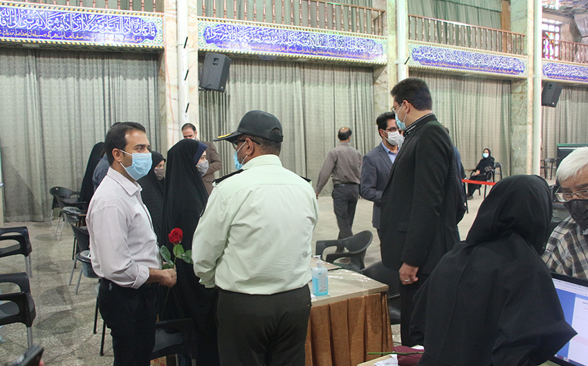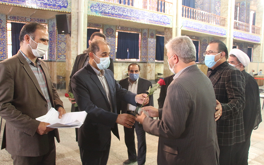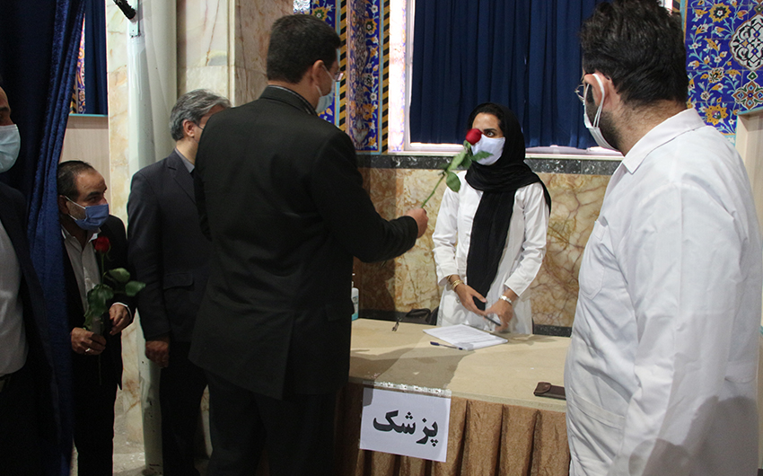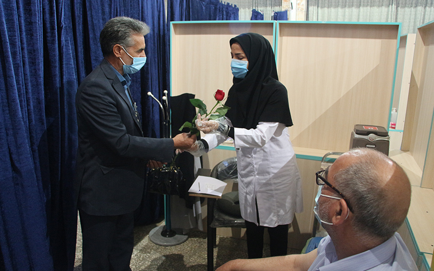 اهدای گل و تشکر از مدافعان سلامت توسط فرماندار و جمعی از مسئولین شهرستان به مناسبت هفته دولت - سازمان مدیریت آرامستانها