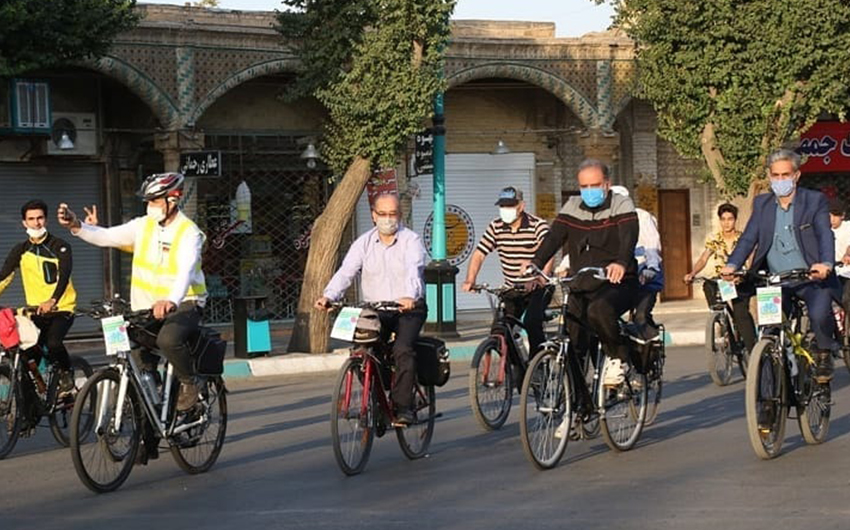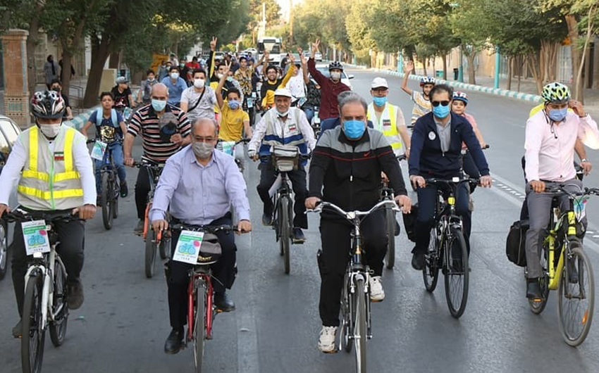 حضور جمال الدین عزیزی شهردار یزد و عباس ملازینلی معاون شهردار و رئیس سازمان فرهنگی اجتماعی ورزشی شهرداری یزد در همایش دوچرخه سواری به مناسبت هفته مبارزه با مواد مخدر