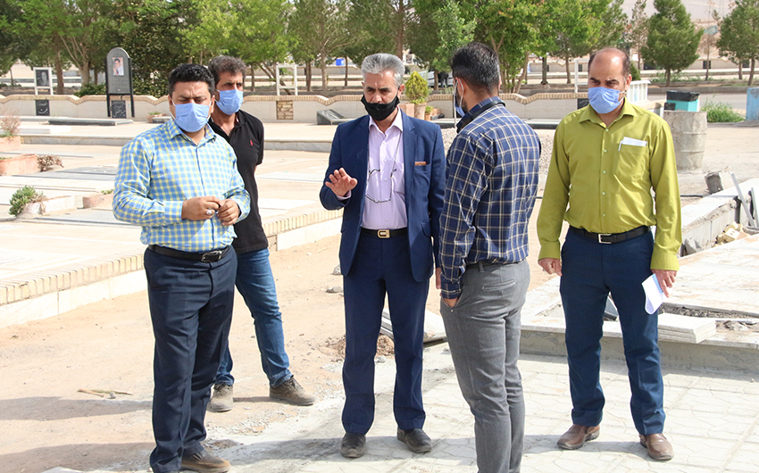 به گزارش روابط عمومی سازمان مدیریت آرامستان های شهرداری یزد، علی زارع رئیس سازمان آرامستان به همراه حمیدرضا گلستانی مسئول عمرانی، علی شریفی مقدم مسئول انبار و اموال، ایمان حسن زاده مسئول تاسیسات و علی دهقان مسئول خدمات در روز دوشنبه 30 اردیبهشت ماه از روند اجرایی پروژه های عمرانی ساخت آرامگاه ها و قبور قطعه عمومی خلدبرین بازدید انجام دادند.